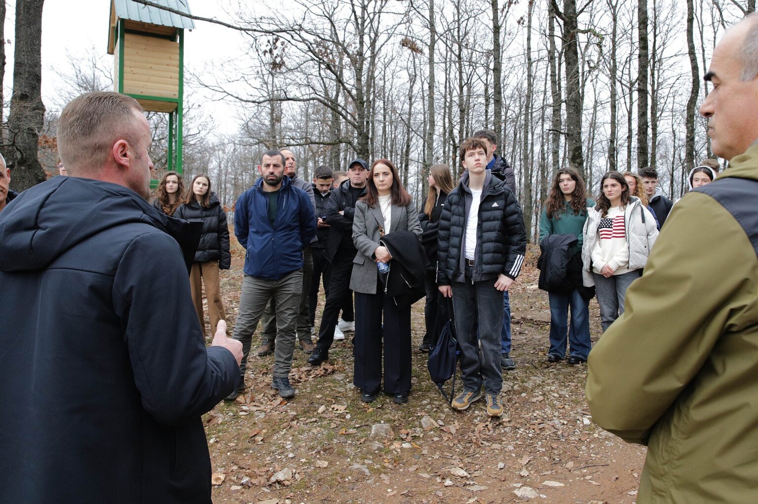 Pjesëmarrësit u njohën nga afër me tipologjinë e pyjeve të Blinajës, prerjet, llojet drunore dhe mundësitë që ofron profesioni i pylltarisë.