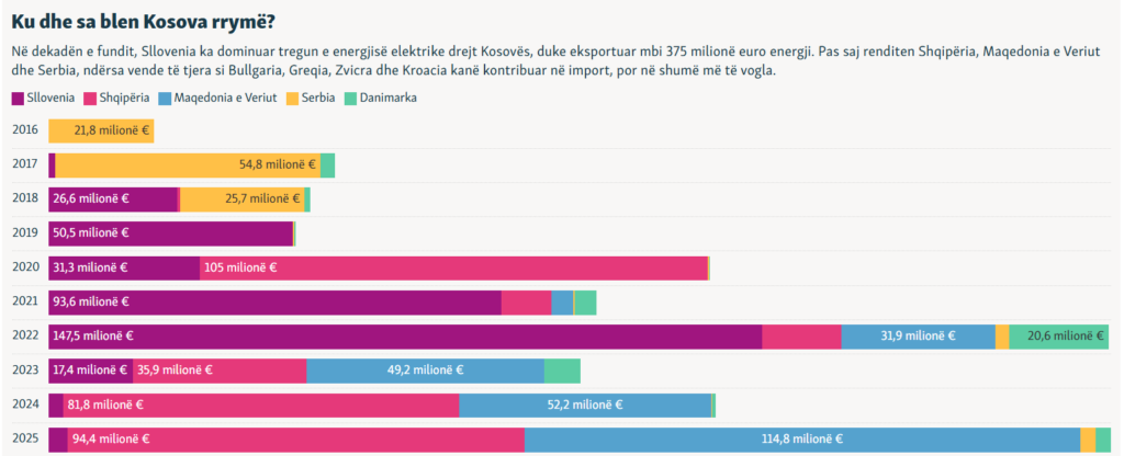 Të dhënat nxjerrin në pah varësinë strukturore të Kosovës nga importi i energjisë elektrike, veçanërisht në vitet me prodhim të ulët vendor dhe çmime të larta në tregjet ndërkombëtare.