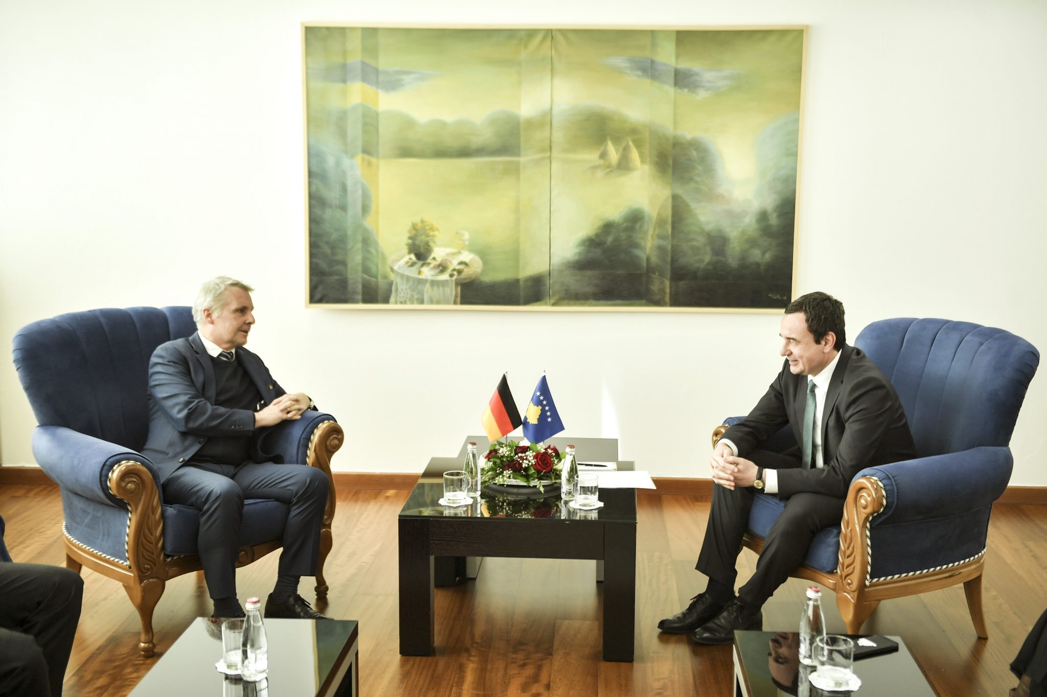 Kryeministri Albin Kurti, pritën në takim ambasadorin e Gjermanisë në Kosovë, Joern Rohde dhe përfaqësuesit e Bankës Gjermane për Zhvillim (KfW): Pablo Obrador, udhëheqës i seksionit për energji për Evropën Juglindore dhe Turqi, René Eschemann, shef i zyrës së KfW në Prishtinë, Vera Baumann, shefe e bashkëpunimit për zhvillim në KfW dhe Ganimete Huruglica nga KfW.