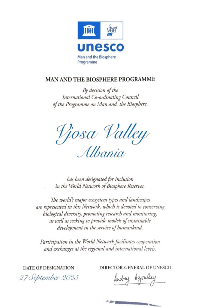 Lugina e Vjosës pjesë e UNESCO – Përfshihet në programin “Njeriu dhe Biosfera”