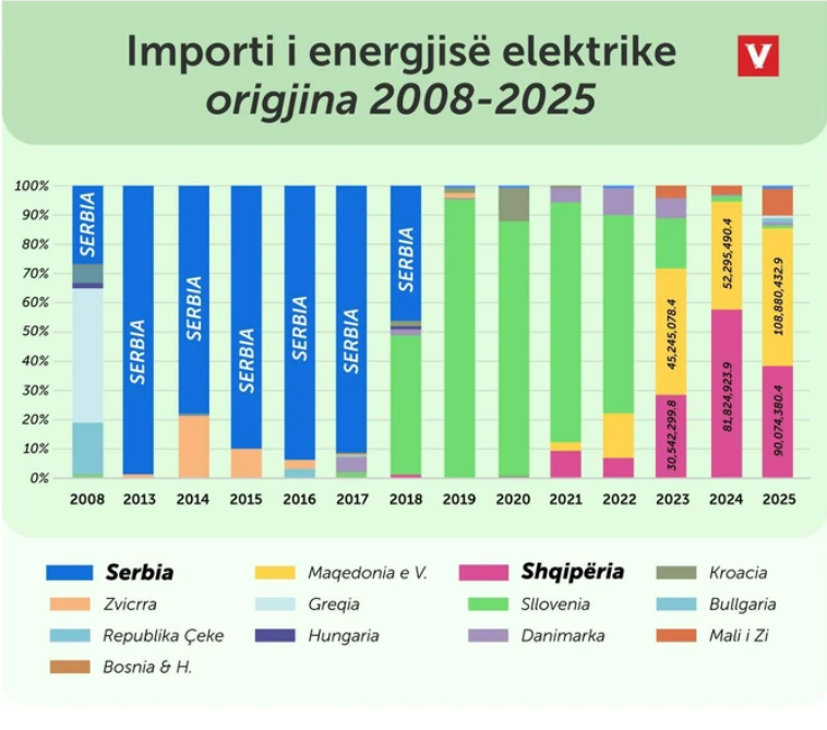 Ai tutje tha se pjesëmarrja e Serbisë në tregun gjatë importit të energjisë elektrike në vitin 2025 është më pak se 1%.